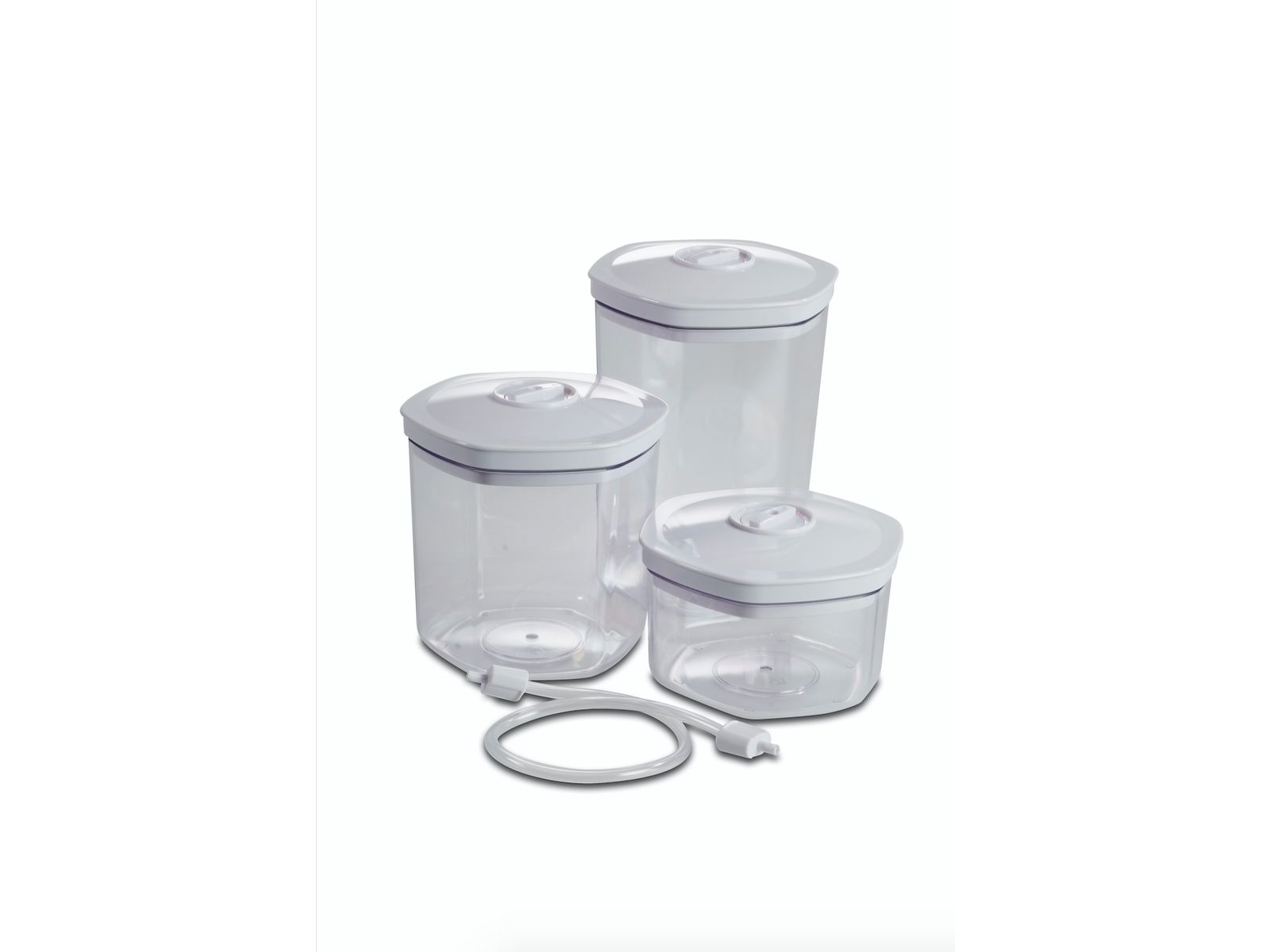 De SOLIS Voorraaddozen zeshoekig zijn geschikt voor zowel de koelkast en de vriezer. Bij deze complete set wordt tevens een vacuümslang meegeleverd.