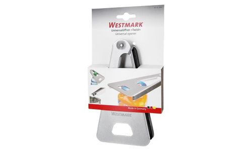 Deze multifunctionele opener is een echte alleskunner. Hij opent flessen, glazen, tubes of schroefdoppen met een diameter van 1,7-9 cm. Een blikkenpons voor gecondenseerde melk en een flesopener zijn ook geïntegreerd. De rubberen lip aan de zijkant garandeert een veilige grip op blikjes, flessen of glazen. De driehoekige vorm ligt comfortabel in de hand en maakt het gebruik zonder veel moeite mogelijk.