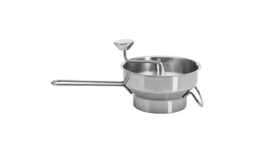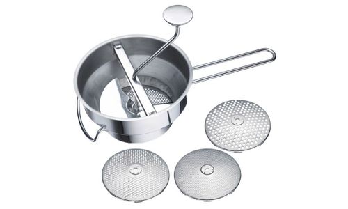 Met zijn 3 gemakkelijk verwisselbare geperforeerde schijven is deze zeefmachine geschikt voor het snel en eenvoudig zeven, pureren en uitpersen van groenten en fruit en is ook ideaal voor het bereiden van babyvoeding. De grote steunratel zorgt voor een goede grip op potten van verschillende groottes. De Finoletta wordt eenvoudig uit elkaar gehaald om schoon te maken. Vaatwasserbestendig.