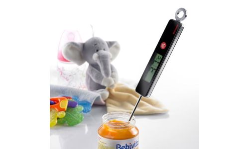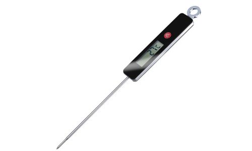 Insteekthermometer geeft binnen enkele seconden de kerntemperatuur van het te roosteren of te grillen voedsel aan, ook ideaal voor pap, cake, wijn etc. Houd de knop langer dan 3 seconden ingedrukt om te wisselen tussen °C en °F. De verandering gaat gepaard met een akoestisch signaal • automatische uitschakelfunctie na 5 minuten, roestvrijstalen temperatuursensor. Behuizing van kunststof • Belangrijk: deze digitale thermometer is niet geschikt om in een hete oven / op een grill te laten staan.