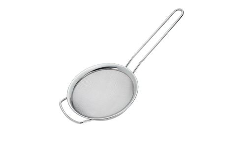 De middelste, zeer fijnmazige zeef is ideaal voor het wassen, uitlekken en zeven van groenten, salades en fruit en voor het uitlekken van rijst of pasta. Dankzij het brede draagframe en de roestvrijstalen rand kan de zeef eenvoudig en veilig in de gootsteen, kom of pot worden opgehangen. Verder is de zeef een goede hulp in de thuisbakkerij. Gebak en gebak kunnen worden bestrooid met poedersuiker of cacaopoeder. Dankzij de lange handgreep met ophanglus ligt hij altijd prettig in de hand en kan hij eenvoudig worden opgehangen voor ruimtebesparende opslag.