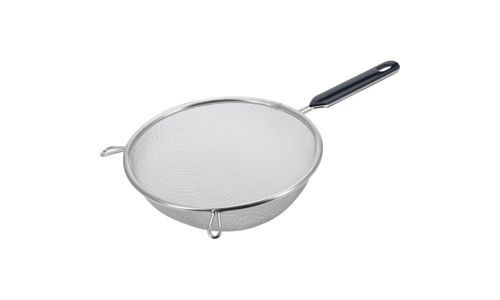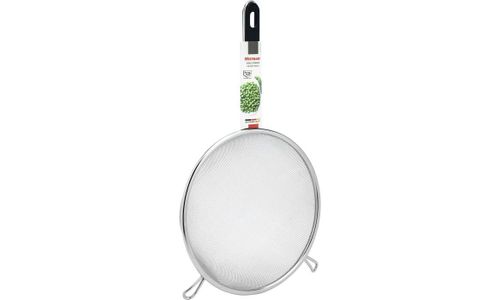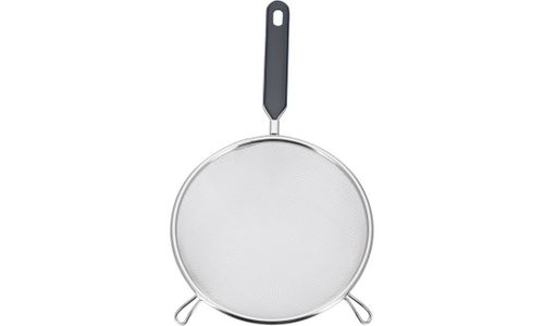 De grote, fijnmazige zeef is ideaal voor het wassen, uitlekken en zeven van groenten, salades en fruit en voor het uitlekken van rijst of pasta. Dankzij de brede steunbalken kan de zeef eenvoudig en veilig in de gootsteen, kom of pot worden gehaakt. Verder is de zeef een goede hulp in de thuisbakkerij. Gebak en gebak kunnen worden bestrooid met poedersuiker of cacaopoeder. Dankzij de lange handgreep met ophanglus ligt hij altijd prettig in de hand en kan hij eenvoudig worden opgehangen voor ruimtebesparende opslag.