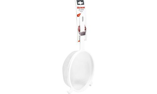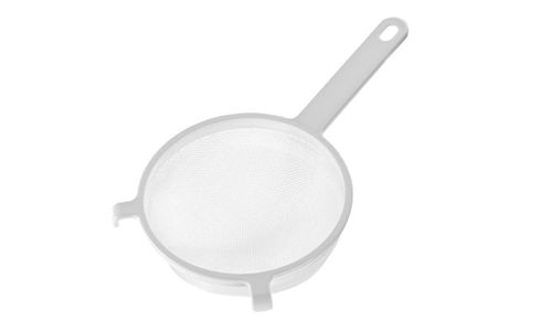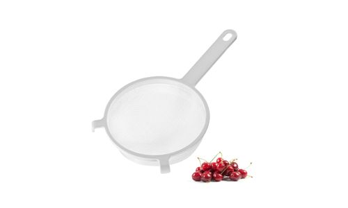• Lichte plastic zeef met twee praktische steunen voor een stevige grip op kopjes, potten en schalen