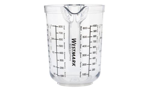 Met de stevige maatbeker meet je je bakingrediënten snel en nauwkeurig af dankzij de schaalverdeling en een vulvolume tot 1 l.