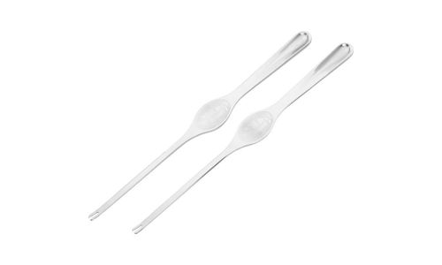 Dankzij de hoogwaardige, langwerpige kreeftenvorken met twee korte, spitse tanden, grijp je het kreeftenvlees elegant vast en haal je het uit de schaal. Dankzij het slanke handvat met reliëf liggen de vorken comfortabel in de hand en zijn de verzonken lepeluiteinden ideaal om de kreeftenschaal af te schrapen.