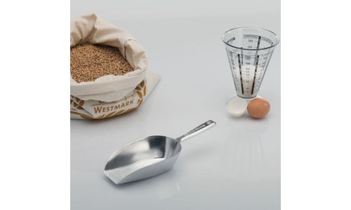 • geschikt als bak-, weeg- of vulschep voor droog, korrelig of grof voedsel zoals meel, suiker, kruiden etc.