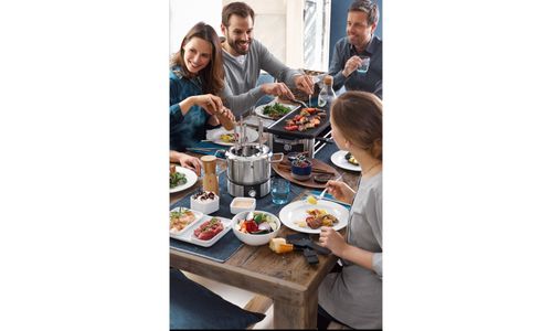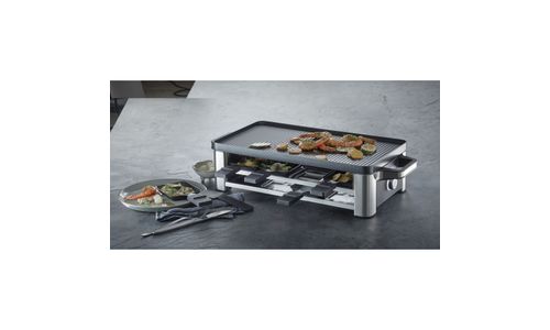 De LONO Raclette is gemaakt van hoogwaardig Cromargan® roestvrij staal en een blikvanger op elke tafel. De omkeerbare bakplaat wordt gebruikt voor het bakken van pannenkoeken en eieren en de temperatuur is variabel instelbaar. De acht pannetjes hebben een anti-aanbaklaag en zijn daarom gemakkelijk schoon te maken. Pannetjes, die niet worden gebruikt, kunnen veilig in de opslagruimte van de raclette worden opgeborgen.