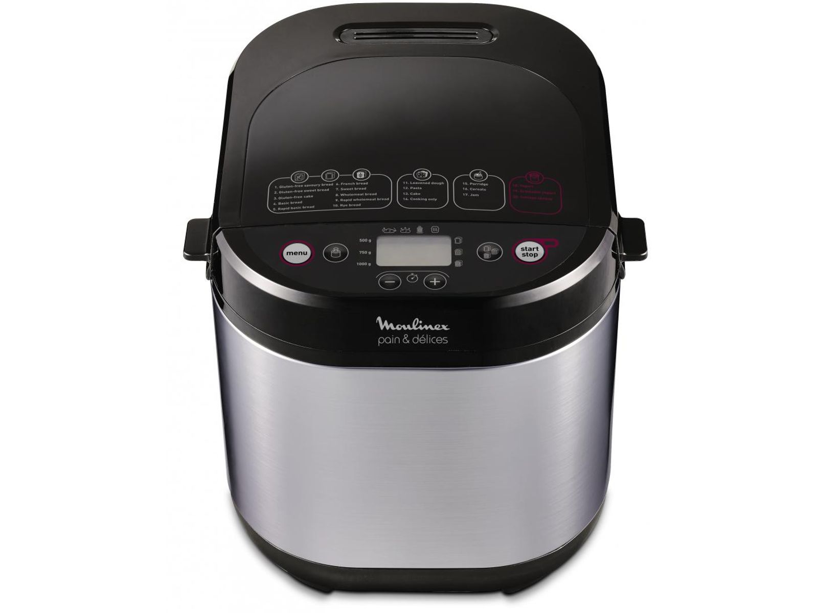 Pain & Délices is de meest volledige en veelzijdige broodbakmachine van Moulinex. Je creativiteit zal geen grenzen kennen! Geniet niet alleen van vers en lekker zelf gebakken brood, maar maak ook zelf pizzadeeg, verse pasta, jam, havermoutpap, granen, en zuivelbereidingen! De 20 programma's omvatten ook glutenvrije programma's voor een brede waaier aan gezonde broden en cakes. Ontdek ze in het speciale receptenboekje! Je kunt nu zuivelbereidingenmaken voor het hele gezin: van yoghurt & drinkyoghurt tot cottagecheese, dankzij 3 speciale programma's + de yoghurtpot van 1 l. Als grote of kleine verbruiker van brood, als alleenstaande of met een groot gezin: je hebt de keuze tussen 3 broodformaten van 500 g tot 1 kg. Met zijn lichte en compacte uitvoeringheeft de Pain & Delices broodbakmachine een modern en exclusief design dankzij de metalen afwerking, en past hij perfect in je keuken. Geniet van vers gebakken brood wanneer je waar wilt dankzij de 15-urentimer: wat is er heerlijker dan de geur van vers gebakken brood 's ochtends?