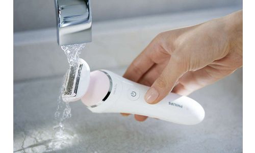 Ervaar een gladde en zachte scheerbeurt voor uw benen en lichaam. De SatinShave Advanced-Ladyshave zorgt zelfs in bad of onder de douche eenvoudig en moeiteloos voor een gladde huid zonder irritatie.
