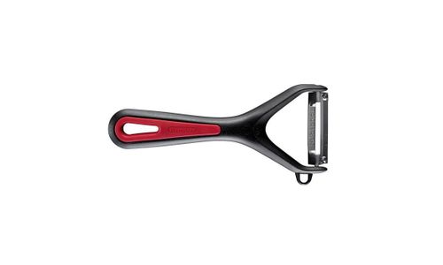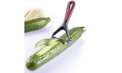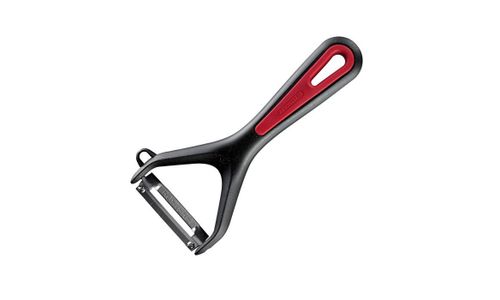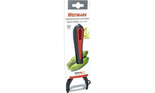 De groente- en aspergeschiller "Gallant" met beweegbaar mes is ideaal voor het schillen van ronde of langwerpige groenten en fruit zoals asperges, komkommer, aardappelen en appels. Het beweegbare mes past zich perfect aan alle contouren aan en de snijder helpt bij het verwijderen van beschadigde plekken en lelijke vlekken. Dankzij de speciale comfortabele soft-touch handgreep ligt de dunschiller perfect in de hand en dankzij de ophanglus kan hij ruimtebesparend worden opgeborgen.