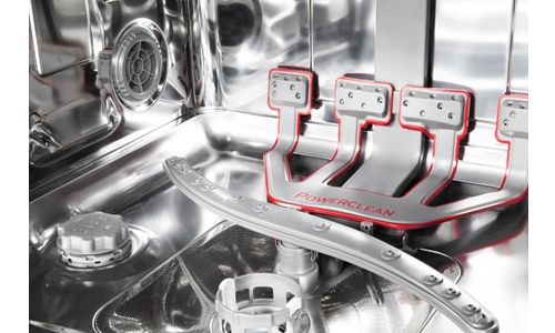 Met PowerClean Pro plaatst u borden en pannen verticaal richting 28 hogedrukstralen die het hardnekkigste vuil weghalen.
