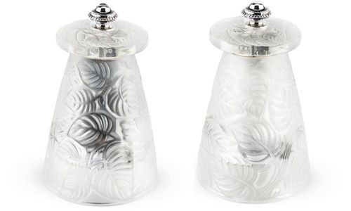 Het duo peper- en zoutmolen Lalique, gepresenteerd in een mooie verpakking, is een heruitgave van de molen “Feuilles” gecreëerd in 1924 door René Lalique, in samenwerking met Peugeot.