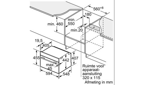 ++ Nishoogte (minimaal): 45,50 cm ++ Inhoud ovenruimte: 47 Liter ++ Reiniging van de oven: Katalyse ++