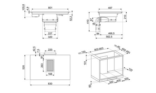 Inductiekookplaat met geïntegreerde dampkap - 80 cm - 2 multizones - 750 m³/h - Autovent - energieklasse A++ - rechte rand