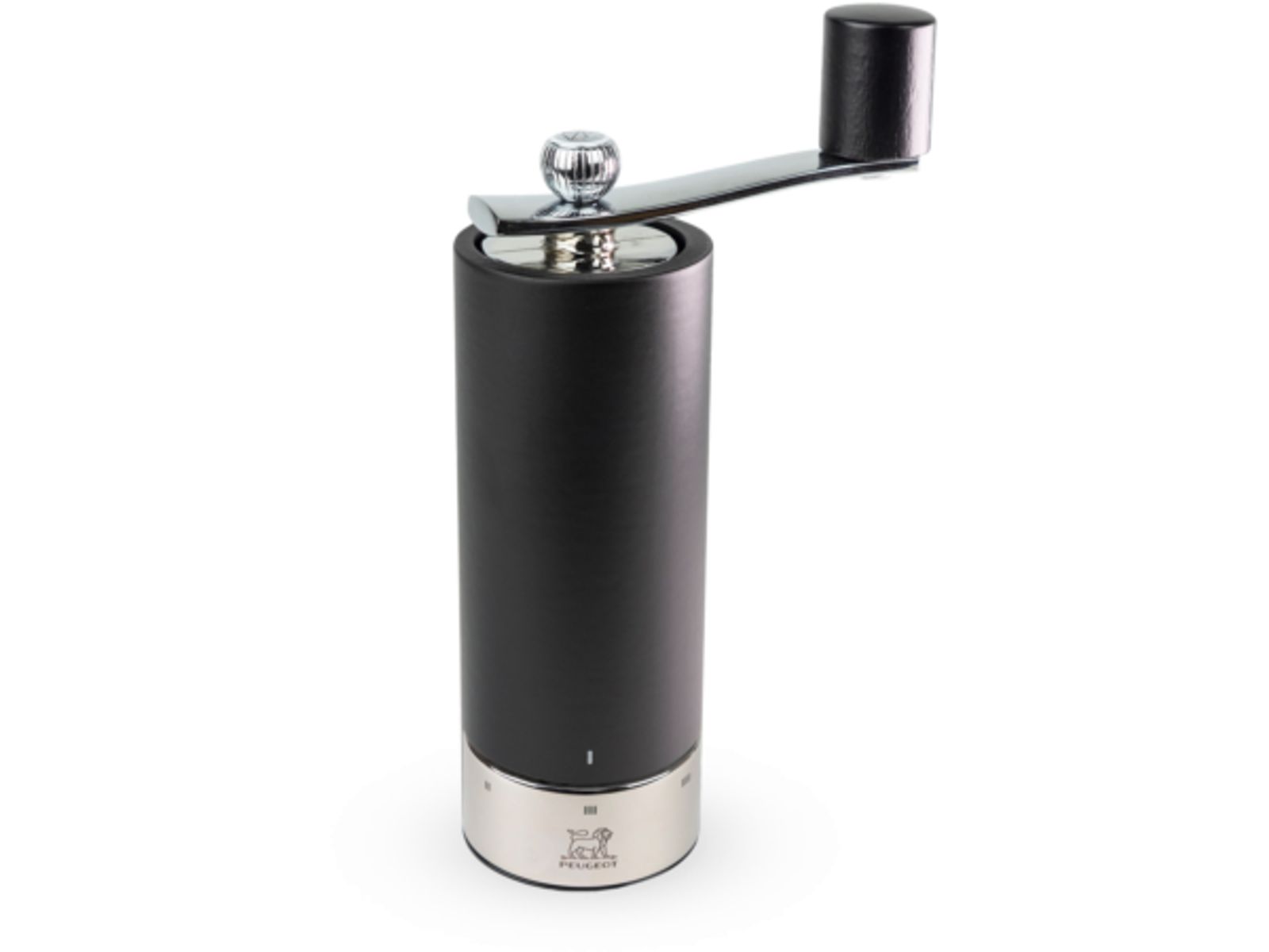 De zeer hedendaagse u‘Select zoutmolen uit de collectie Isen, heeft een schitterende metalen hendel en geraffineerde matzwarte kleur. Deze manuele molen uit beukenhout, vervaardigd in de Franche-Comté, in de ateliers van Peugeot, laat u toe uw droog zout moeiteloos te malen