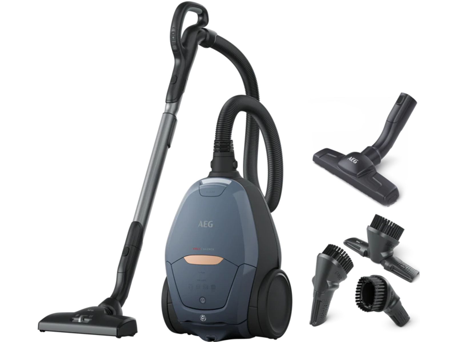VX82-1-5DB – Denim Blue – Geproduceerd uit 55% gerecycled kunststof – Zuigkrachtregeling met afstandsbediening aan de handgreep en Smart-functie – OneGo PowerClean zuigmond voor harde vloeren en tapijten (36 mm) met vergrendelingssysteem en Smart-functie – Extra AeroPro ParkettoPro zuigmond – AeroPro 3 in 1 accessoire bevestigd aan de handgreep: spletenzuigmond, zuigmond voor zitbanken, meubelborstel – LED stofzakvolaanduiding – Wasbare Hygiene filter (Epa 12) – Stofzak : Classic Long Performance s-bag – Actieradius: 12 meter - 57dB(A)