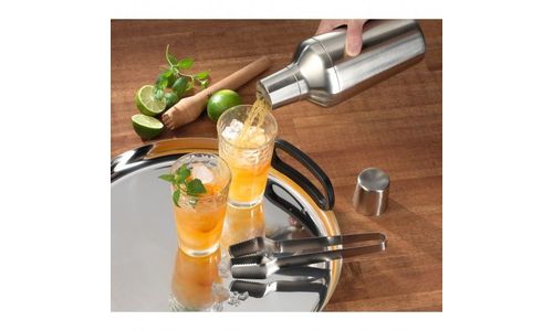 • Verrassend functioneel en compact - de set bevat een shaker met een geïntegreerd staafzeefje, een ijstang en een stamper. Geïntegreerde zeef houdt ijs en stukjes fruit tegen