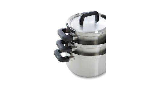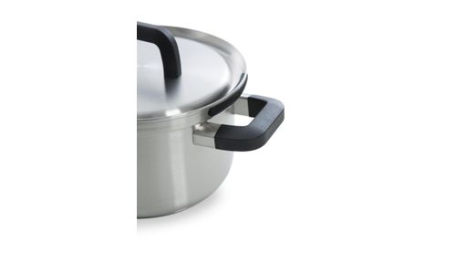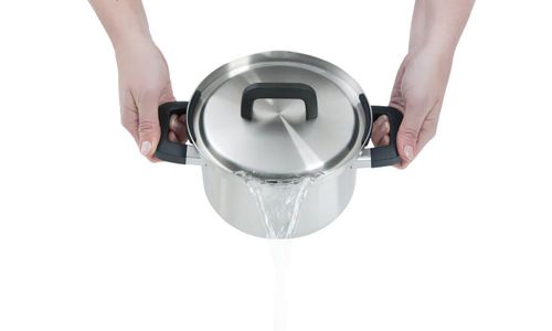 Vergroot het kookgemak in de keuken met BK Flow Cool. Deze gebruiksvriendelijke pannenserie is voorzien van een veilig en uniek afgietsysteem. Met een simpele kwartslag draai, vergrendel je het deksel onder de zwarte siliconen stoppers. Zo kun je op een veilige manier met twee handen afgieten. De steelpan kun je zelfs met een hand afgieten! De pannen zijn voorzien van stevige hooggeplaatste koudgrepen welke niet snel warm worden. Deze pannen zijn gemaakt van hoogwaardig edelstaal en hebben een ingekapselde sandwichbodem. Zo warmen ze sneller op en wordt de warmte perfect en gelijkmatig verdeeld. De Flow serie is op elke warmtebron te gebruiken (incl. inductie). Na gebruik kunnen de pannen gereinigd worden in de vaatwasser. Daarnaast zijn ze goed stapelbaar vanwege de hooggeplaatste grepen; zo bespaar je ruimte in de keukenkast.