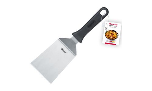 Deze hoogwaardige draaier is gemaakt van roestvrij staal en heeft een gebogen, stijf en gesloten mes voor intensief gebruik bij gebruik in professionele keukens. Het is ideaal voor het optillen en draaien van geroosterd en gegrild voedsel op grillplaten, pannen, plancha's of BBQ. Dankzij de hoek van het mes kan het vlees beter worden gekeerd in diepe pannen - minimaal risico op brandwonden. Door zijn extreme stabiliteit is hij ideaal voor gebruik in de commerciële sector of voor de grillprofessional thuis.