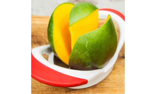 > Fruitsnijder  > Westmark  > Mangosnijder uit rvs en kunststof wit en rood 20x10.5x6.5cm