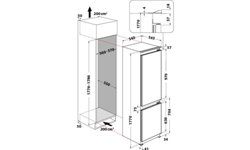 ++ Nishoogte (minimaal): 177,50 cm ++ Totale netto inhoud: 273 Liter ++ Vriesgedeelte ++