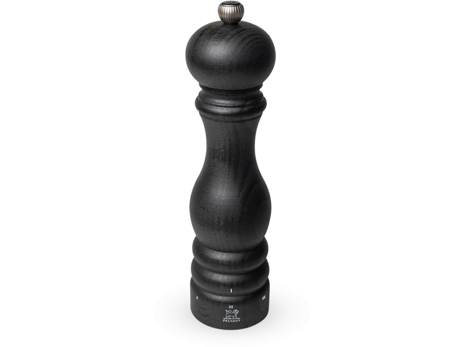 Door de houtnerven te sublimeren, geeft deze nieuwe grafietafwerking, verkrijgbaar in een beperkte oplage, de molen Paris een gedurfd en eigentijds karakter. Behalve het feit dat deze emblematische Peugeot pepermolen van 22 cm een perfect instrument is, is het ook een ultramodern decoratief object. Het stalen maalwerk met onbeperkte garantie, vervaardigd in onze werkplaatsen, is ontworpen om de smaken van pepers (zwart, wit, rood, groen) maar ook roze bessen als ze worden gemengd met peperkorrels, en korianderzaadjes tot hun recht te laten komen. Het u'Select-systeem waarmee u de maalgraad precies kunt instellen, zorgen ervoor dat het een must wordt. Draai aan de ring in de voet van de molen en volg de instellingen van 1 tot 6, waarbij 1 de fijnste maalgraad is.