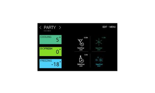 Wilt u een extra snelle afkoeling van veel verse levensmiddelen of wilt u zo snel mogelijk veel flessen frisdrank afkoelen, dan biedt de SuperCool fuctie uitkomst. Het koeldeel is tijdelijk extra koud, de resttijd na activering is zichtbaar en het apparaat schakelt na afloop automatisch terug naar de door u ingestelde normale koeltemperatuur.