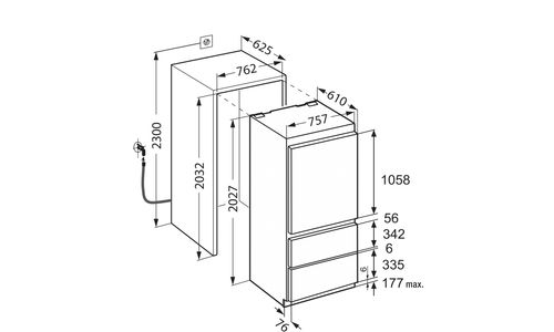 | Type koelkast | Driedeurs koelkast (vriesvak onderaan) |