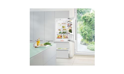 De Liebherr ECBN 5066 biedt dankzij de breedte van 76 cm veel koelruimte. Dit XL-inbouwmodel met 2 BioFresh 0° laden en aparte temperatuurregeling van het koel- en NoFrost vriesdeel is onzichtbaar in uw keuken in te bouwen. Dankzij de volautomatische Icemaker met directe kraanaansluiting en filter heeft u altijd heldere ijsblokjes voorradig.