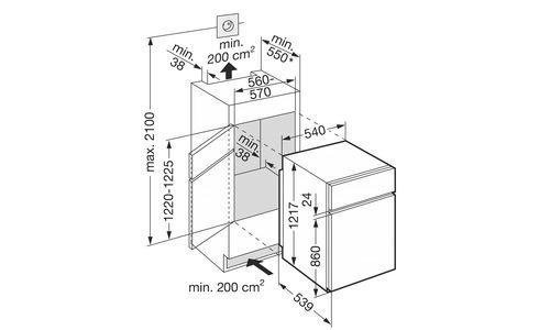 ++ Nishoogte (minimaal): 122 cm ++ Totale netto inhoud: 198 Liter ++ Vriesgedeelte ++