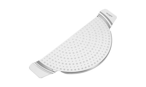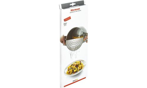 De hoogwaardige en praktische opgiethulp zorgt ervoor dat u hete gerechten veilig kunt zeven en dat u zich bij het schenken van pasta, rijst of groenten niet verbrandt door water en stoom. Dankzij de multiperforatie is het mogelijk om overtollig water volledig weg te gieten. Het grote voordeel voor uw veiligheid: het roestvrij staal is hittebestendig tot 190 graden Celsius, behoudt dus zijn vorm en staat dankzij de opgerolde rand stevig op de pot. De twee gegoten verzonken handgrepen bieden u een veilige en stevige grip. Dankzij de platte afmetingen kan de zeef snel en eenvoudig in de keukenlade worden opgeborgen.