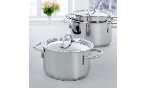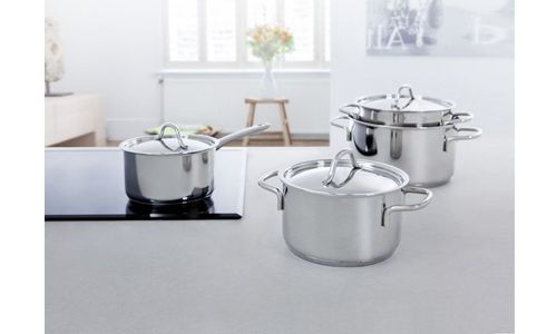 De BK Profiline is een pannenserie zonder opsmuk die ongecompliceerd gemak biedt op elk fornuis. De pannen hebben een body van hoogglans gepolijst roestvrij edelstaal met een handige schenkrand. De body en bodem lopen vloeiend en afgerond in elkaar over, wat zorgt voor moeiteloos omroeren en eenvoudige reiniging. De grepen en stelen liggen prettig in de hand en zorgen voor een veilige grip tijdens het kookproces. De deksels zijn hoogglans gepolijst en maken het geheel mooi af.