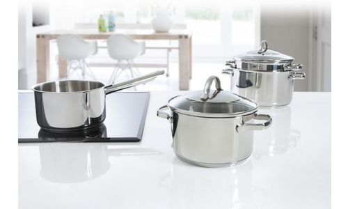 BK Essentials is een pannenset voorzien van alle gemakken, zodat koken heel eenvoudig wordt. De pan en de bodem lopen vloeiend en afgerond in elkaar over, dat zorgt voor moeiteloos omroeren en eenvoudige reiniging. De grepen en stelen liggen prettig in de hand en zorgen voor een goede grip tijdens het kookproces. De combinatie van warmtebehoud door de glazen deksel, de snelle opwarming en warmteverdeling door de ingekapselde sandwichbodem maken de BK Essentials een energiezuinige pan in het gebruik.
