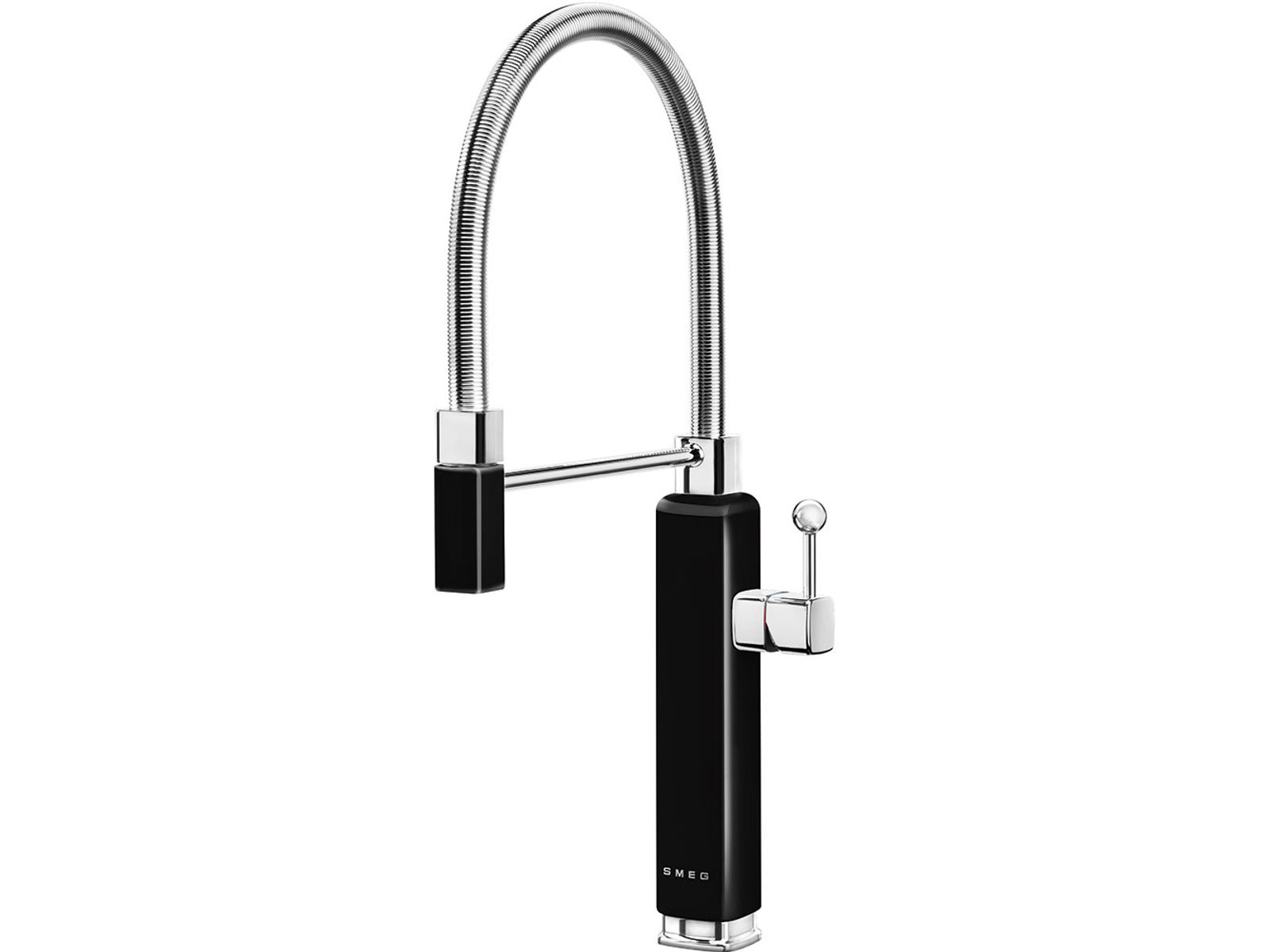 Keukenmengkraan 50's style - handsproeier - chroom en zwart