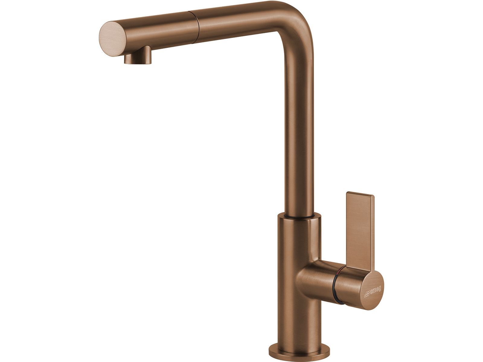 Keukenmengkraan - uittrekbare handsproeier - koper PVD