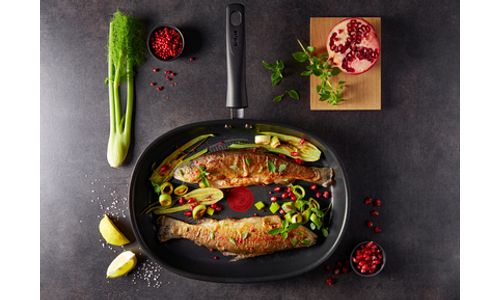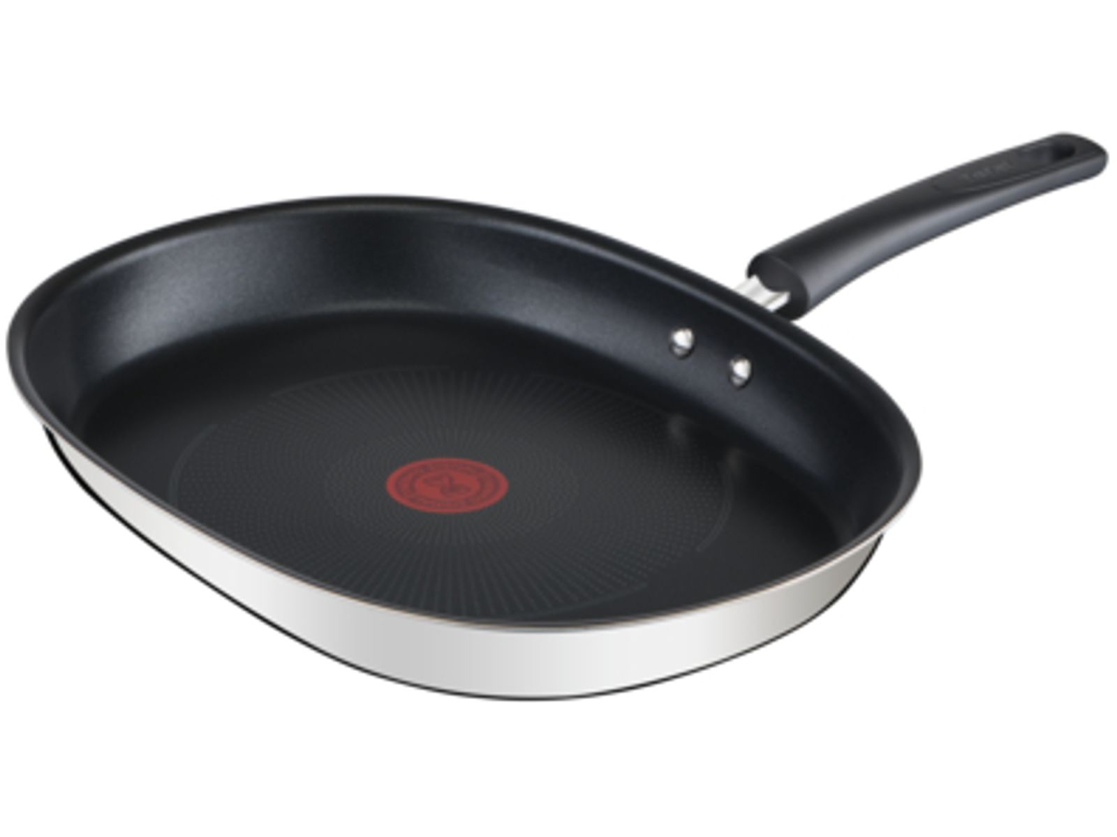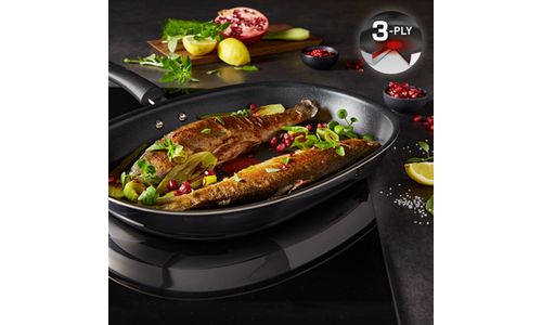 Laat je met de Tefal Emotion vispan leiden door je inspiratie! Met een premium 3-laagse constructie voor perfecte warmteverspreiding, kun je met deze ovale koekenpan met antiaanbaklaag je naar een hoger niveau tillen. Bereik restaurantkwaliteit dankzij de specifieke ovale vorm die alle ingrediënten kookt die een ronde pan niet kan bevatten, zoals hele vis of gesneden aubergine, met uitzonderlijke resultaten.