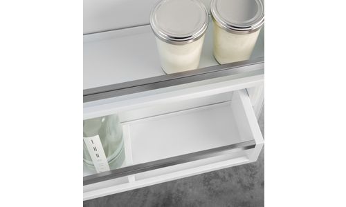 Deze inbouwkoelkast uit de Pure-serie voorziet in alle essentiële behoeften. In de EasyFresh lade bewaart u groenten en fruit bij de ideale luchtvochtigheid zodat smaak en structuur behouden blijven. Een bakplaat kan probleemloos in het ruime koeldeel worden geschoven. De temperatuur is via het Monochroom display met Touch-bediening instelbaar en toont naast de actuele temperatuur ook alarmmeldingen bij bijvoorbeeld een te lang geopende deur of stroomuitval. Voorbereid voor smarthome toepassingen.