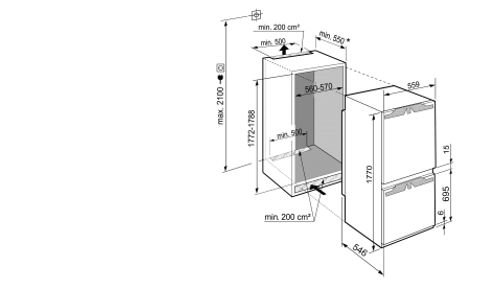 ++ Nishoogte (minimaal): 177,20 cm ++ Totale netto inhoud: 255 Liter ++ Vriesgedeelte ++