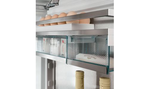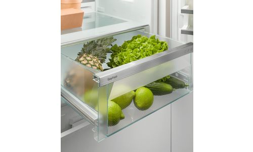 Deze koel/vriescombinatie biedt alles. Het robuuste SmartSteel interieur is hygiënisch en geeft een professionele uitstraling. De LED wandpanelen en Ambient verlichting zorgen dat niets aan uw oog ontsnapt en de deur met SoftSystem sluit altijd en zacht. In de EasyFresh lade bewaart u groenten en fruit zodat smaak en structuur behouden blijven. Het NoFrost vriesdeel met LED verlichting hoeft u nooit meer te ontdooien. De IceMaker met vaste wateraansluiting zorgt automatisch voor voldoende ijsblokjes.