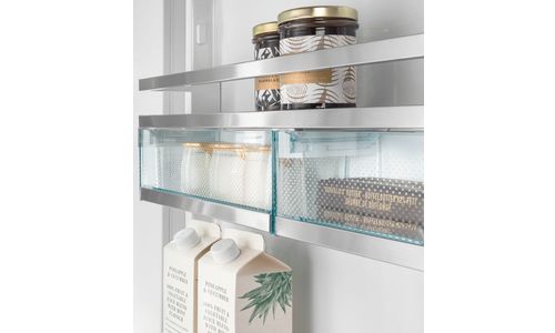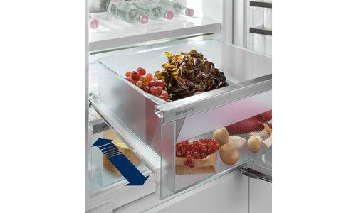 In deze koel/vriescombinatie aan luxe geen gebrek. De SmartSteel achterwand geeft een professionele uitstraling. Perfecte verlichting met de LED wandpanelen en de deur met SoftSystem sluit altijd zacht. Het FreshAir filter zorgt dat geuren worden geneutraliseerd. In de 2 BioFresh laden op SoftTelescopic rails bewaart u groenten en fruit tot 3x langer. Eenvoudige bediening met het Touch & Swipe kleurendisplay. Het SmartFrost vriesdeel met LED verlichting is makkelijk en snel te ontdooien.