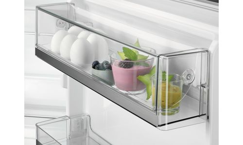 Een ruime groentelade over de volle breedte, ontworpen om alles wat je koopt te bewaren. Zelfs onregelmatig gevormde, langere groenten passen nu gemakkelijk. Van komkommers tot selderij, alles past in deze groentelade.