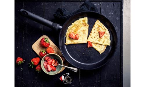 Van oer-Hollandse pannenkoeken tot Surinaamse roti; alle wereldgerechten zijn mogelijk in deze pannenkoekpan. Door de lage rand zijn de pannenkoeken eenvoudig te keren. De stevige koudsteel wordt niet snel heet en de pan is daardoor veilig in gebruik. De pannen zijn vaatwassergeschikt. Door de speciale Teflon© Platinum Plus antiaanbaklaag (vrij van PFOA) behoort aanbakken tot het verleden. Deze pan is op elke warmtebron te gebruiken. Door de dikke “full steel” bodem van 4 mm kunnen deze pannen ook op inductie.