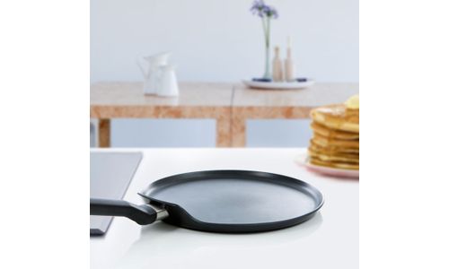 Van oer-Hollandse pannenkoeken tot Surinaamse roti; alle wereldgerechten zijn mogelijk in deze pannenkoekpan. Door de lage rand zijn de pannenkoeken eenvoudig te keren. De stevige koudsteel wordt niet snel heet en de pan is daardoor veilig in gebruik. De pannen zijn vaatwassergeschikt. Door de speciale Teflon© Platinum Plus antiaanbaklaag (vrij van PFOA) behoort aanbakken tot het verleden. Deze pan is op elke warmtebron te gebruiken. Door de dikke “full steel” bodem van 4 mm kunnen deze pannen ook op inductie.