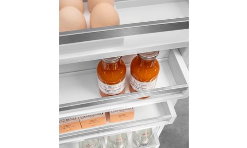 Het verplaatsen van ingevroren producten is niet nodig. In iedere lade kunnen producten snel en vitaminevriendelijk worden ingevroren. De rondom gesloten diepvriesladen met transparante voorzijde zijn extra hoog en uitneembaar. Daarmee garanderen zij een optimaal zicht op de producten in de lade. Iedere lade heeft 2 handgrepen waarmee de lade veilig kan worden uitgenomen.