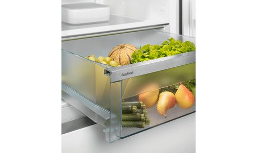 Laat de zomer maar komen met deze koel/vriescombinatie met IceMaker. Het water komt uit een gemakkelijk te vullen tank, een vaste wateraansluiting is niet nodig en een glas gekoeld water is altijd voorhanden. Het deelbare plateau en flessendraagrooster bieden extra flexibiliteit. In de EasyFresh lade bewaart u groenten en fruit bij de ideale luchtvochtigheid. Het FreshAir filter zorgt voor een fris interieur en het NoFrost vriesdeel hoeft u nooit te ontdooien. Geschikt voor smarthome toepassingen.