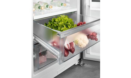 Deze koelkast met vriesvak en monochroom display met Touch-bediening biedt dat beetje extra. Het deelbare draagplateau en het geïntegreerde flessenplateau bieden extra flexibiliteit. In de 3 BioFresh laden op telescooprails blijven groenten en fruit tot 3x langer vers dan in normale groenteladen. De VarioSafe biedt de perfecte opbergplek voor kleine potjes en tubes. PowerCooling met FreshAir filter zorgt voor een gelijkmatig verdeelde temperatuur en een fris interieur. Voorbereid voor smarthome.