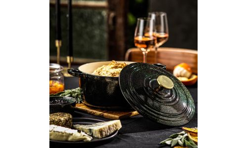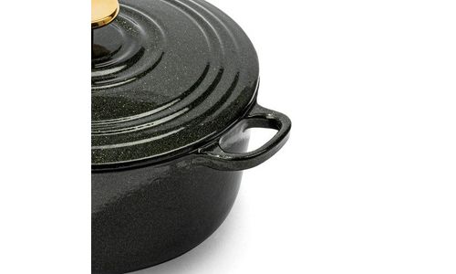 ++ Diameter: 24 cm ++ Materiaal: Gietijzer ++ Geschikt voor warmtebronnen: Microgolfoven ++