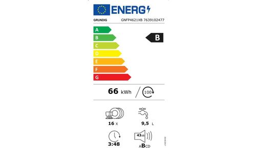++ Energieklasse: B ++ Geluidsniveau: 43 dB(A) ++ Bestekschikking: Besteklade ++