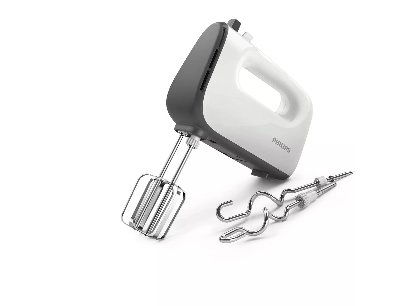 Met de Philips-mixer maakt u heerlijke luchtige cakes en brood voor uw gezin. Luchtige, kegelvormige kloppers zorgen voor kortere kloptijd en glad cakebeslag. Met de krachtige motor van 450 W komt u moeiteloos door het taaiste deeg.
