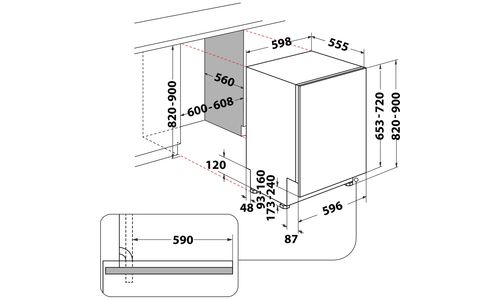 Inbouw vaatwasser 60cm, Core+, NEL:D, 9.5 L, 43 dB(A), 10p, 14 couverts, Sensor, uitgestelde start, Licht op vloer, Multizone, kolom installatie, Aquastop, ActiveDry, zilver